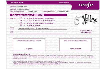 Gracias a nuestro tesorero de la EstelCon, Juan Carlos Sauri, a quien, aunque no sea su nick, dámosle a menudo por llamar "Sauron", os adjuntamos la Cédula de descuento de Renfe tramitada específicamente para la Estelcon 2013 que os permitirá ahorraros un 30% del coste del billete ferroviario, si es el tren el medio de transporte que escogéis para ir a la Estelcon, y/o para volver a vuestras casitas, snif, snif, cuando se acabe.